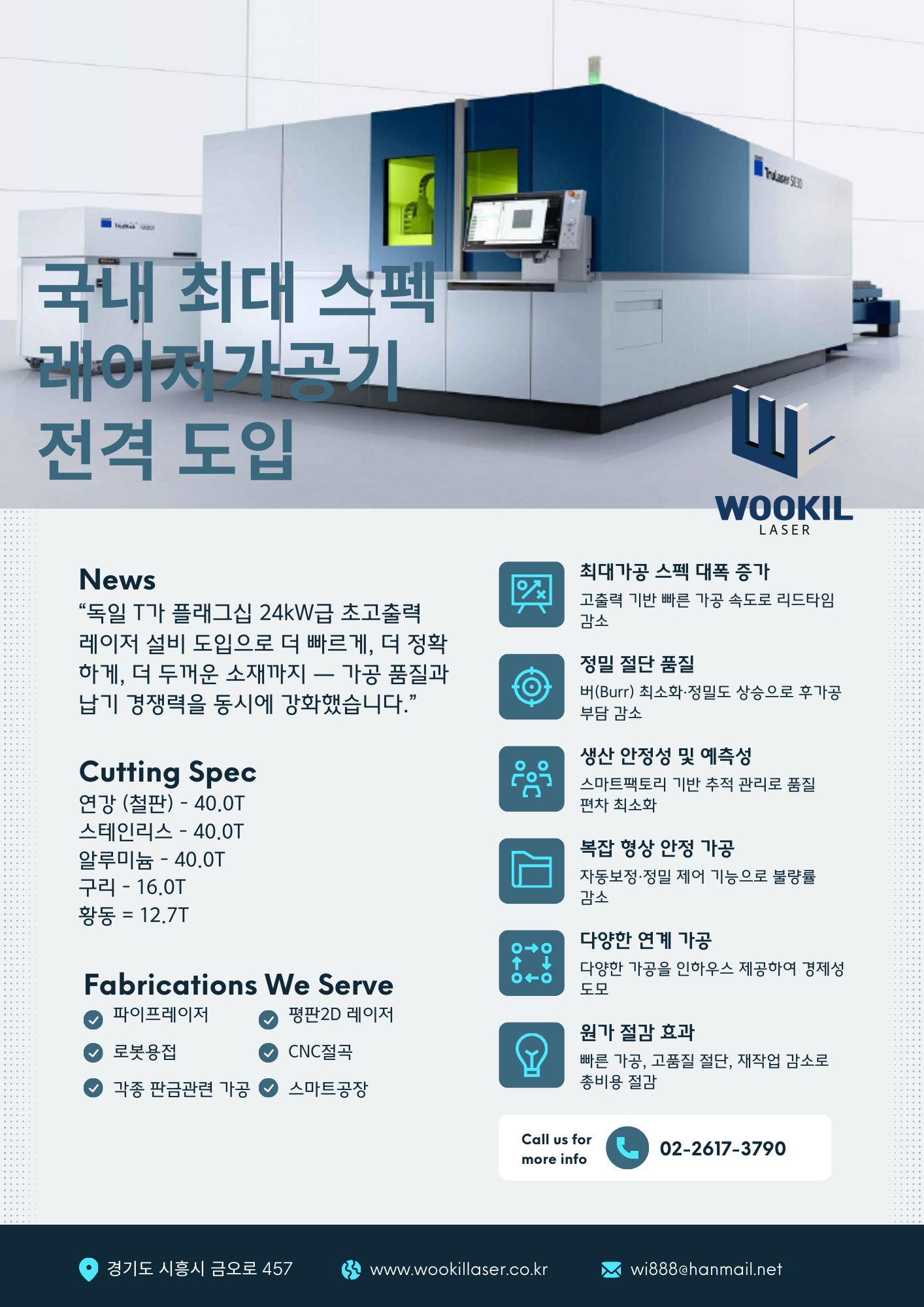 안녕하세요. 레이저가공 전문업체 욱일레이저 입니다.